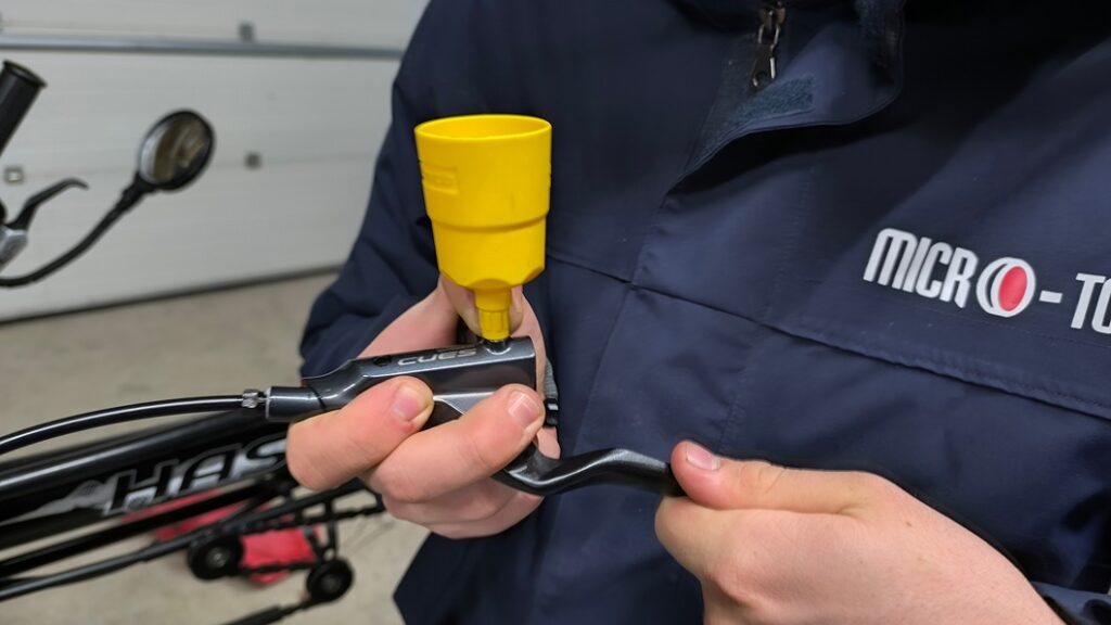 Az olaj feltöltésére nincs szükség, mert gyárilag fel volt töltve a rendszer. Amíg nem volt összeszerelve, addig azért nem folyt ki a fékcső végén az olaj, mert egy kis hártyával le volt „dugózva”.