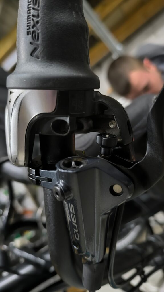 Kiválasztáskor szempont volt, hogy a fék munkapontja állítható legyen. Magyarul hol fogjon a fék a fékkar állásához képest. Ezt egy csavarral oldották meg a fékkar tövében.